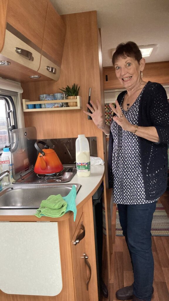 Sandra cooked our first meal in the van too. Lovely evening watching TV which was the first of my improvements. More to follow.